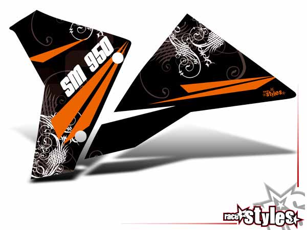 Beschreibung: Kühlerspoiler Dekor li./re. passend für KTM 950 SuperMoto 2006-2008.