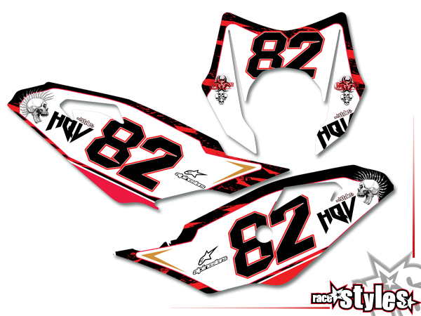 Description: Skull-FMX number plate decal kit for HUSQVARNA SM / SMR / WR / WRE / CR / TC / TE models 2000-2013.