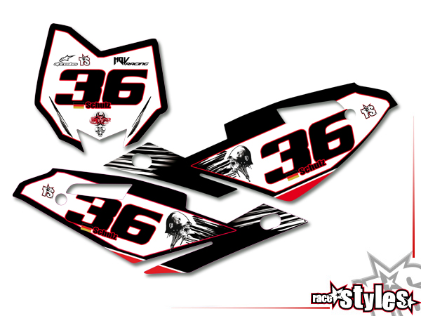 Descrizione: Skull-FMX kit deco portanumero per HUSQVARNA SM / SMR / WR / WRE / CR / TC / TE modelli 2000-2013.
