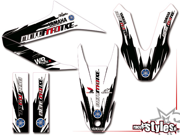Description: Factory-MX basic graphic-kit for YAMAHA WR 125X / 125R (2009-2017). This kit includes the following decals: fork protectors le./ri., fender front/rear and rad covers le./ri.