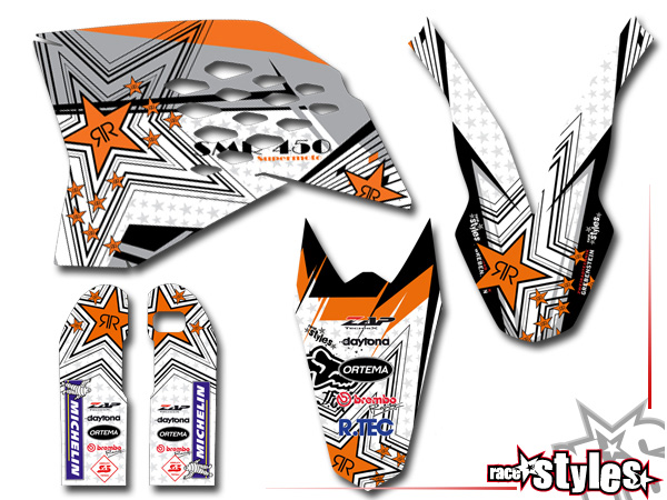 Description: Silver-LINE basic graphic-kit for KTM SX / SX-F (2007-2010) and EXC / EXC-F / SMR (2008-2011). This kit includes the following decals: fork protectors le./ri., fender front/rear and rad covers le./ri.