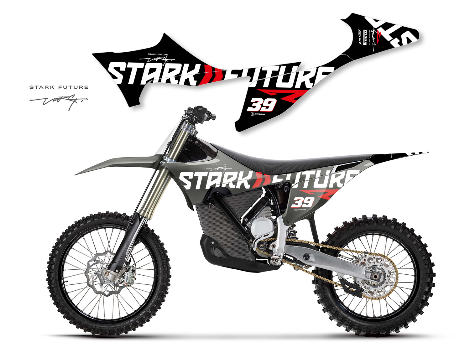 Descripción: kit gráfico completo para todos los modelos STARK VARG que consta de horquilla izquierda / derecha, guardabarros delantero / trasero, radiador izquierda / derecha y campos de números básicos en diseño Future.